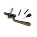 - The handle is cranked forwards to ensure this protrudes far enough from the window for ease of use.